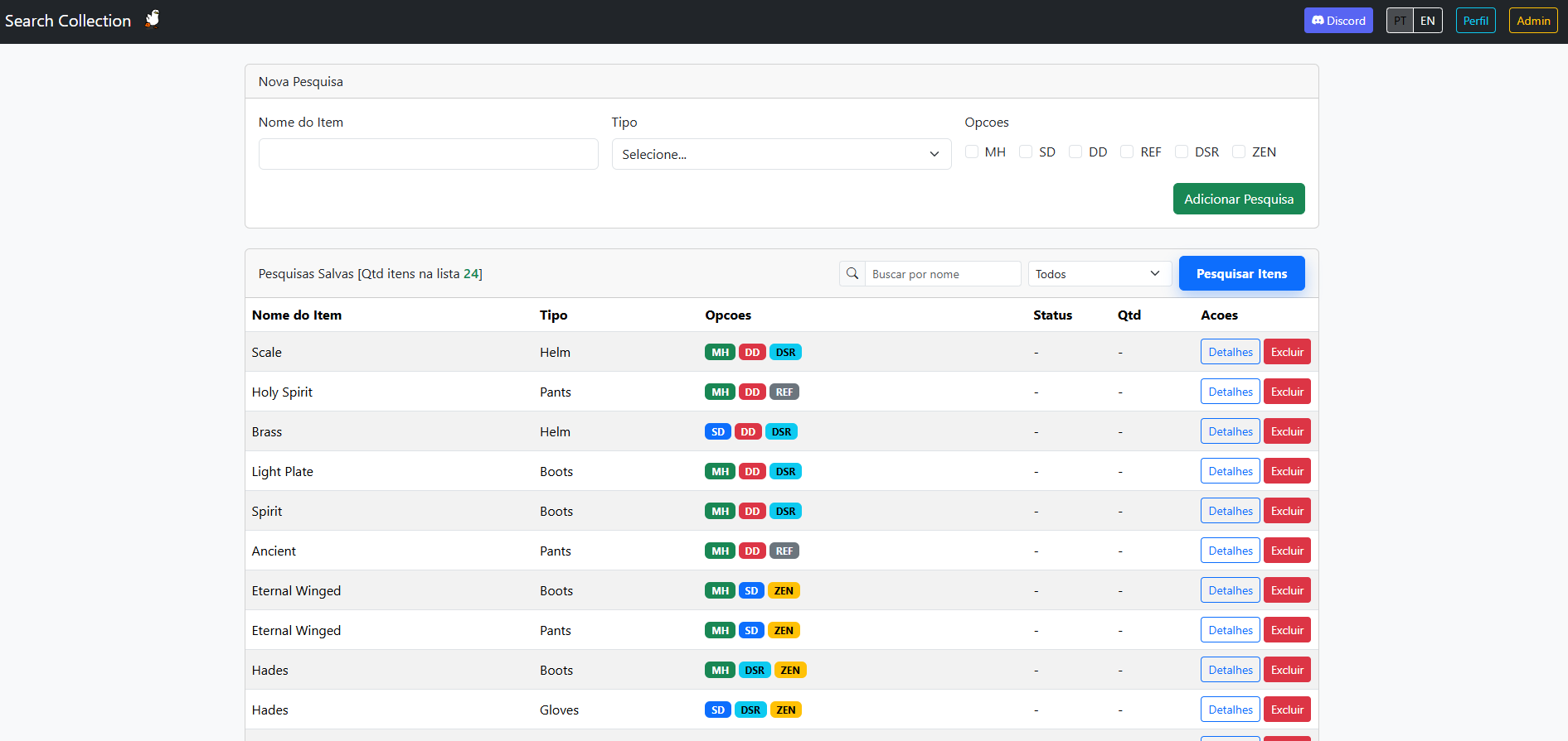 Sistema para busca em massa em um site de venda de itens para jogos.